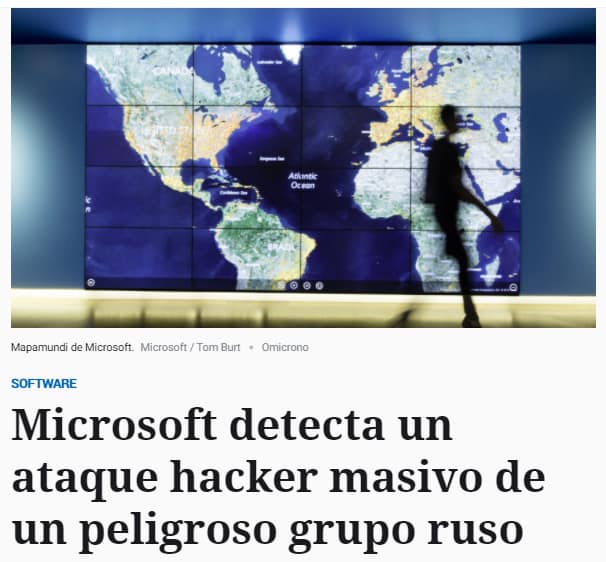 Por otro parte, esta semana Microsoft envió alerta que crackers rusos están infiltrándose en la nube y en servicios tecnológicos de varias organizaciones. Este grupo de ciberdelincuentes conocido como Nobelium, fue el que a finales de 2020 lograron infiltrarse en los sistemas del Gobierno y empresas estadounidenses a través del software SolarWinds y que está vinculada al Servicio de Espionaje Exterior de Rusia (SVR).