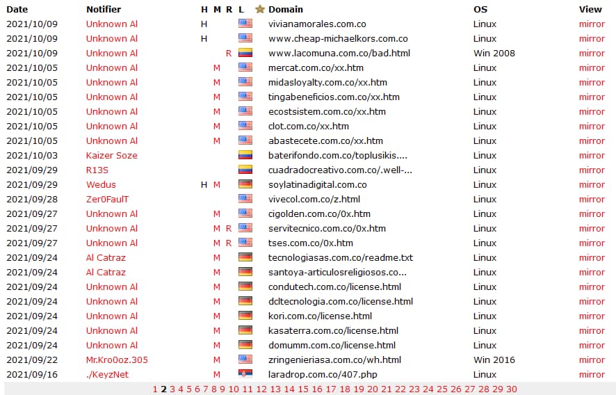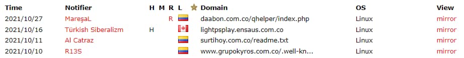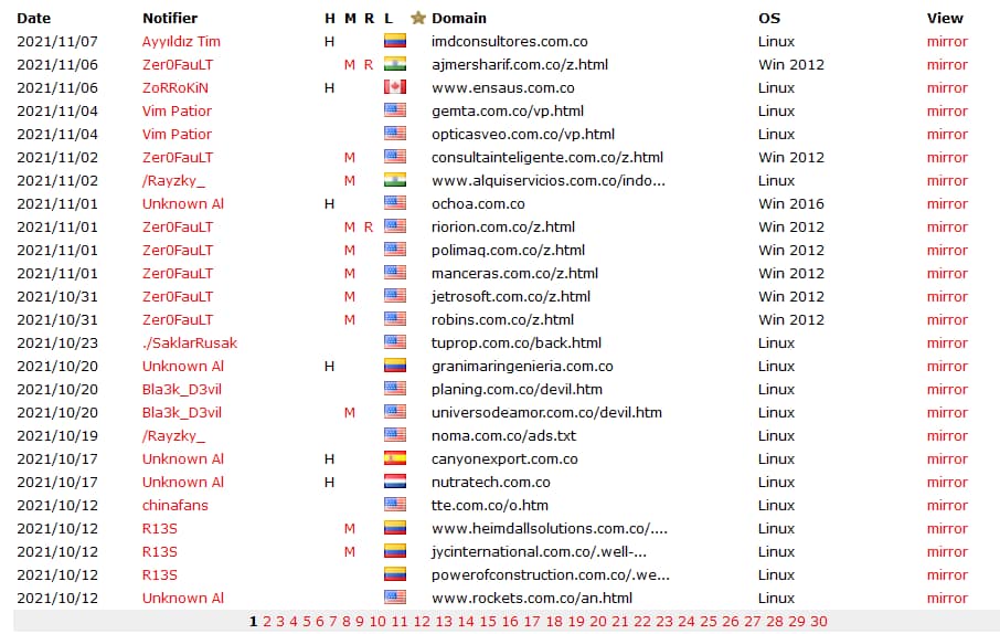 Realizando un monitoreo de sitios colombianos que han sido atacados a la fecha, nuestro equipo encontró el siguiente listado: