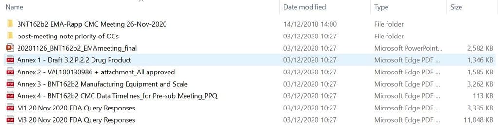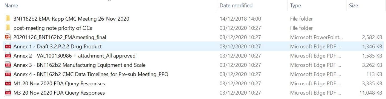 Se logró confirmar que algunos de los documentos estaban relacionados con las presentaciones reglamentarias de las empresas de la vacuna BNT16262, almacenada en el servidor de la organización. Poco después del ataque, los piratas informáticos filtraron los datos robados como parte de un ciberataque dirigido contra la EMA.