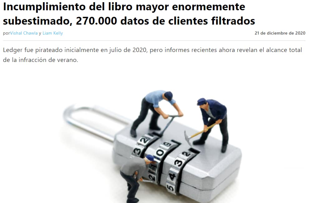 Violación de datos del cliente del libro mayor: Ledger es una empresa francesa de carteras de hardware de criptomonedas. Si bien las billeteras y las criptomonedas están bien protegidas, una configuración incorrecta de la API de la tercera parte terminó filtrando datos personales de sus clientes.