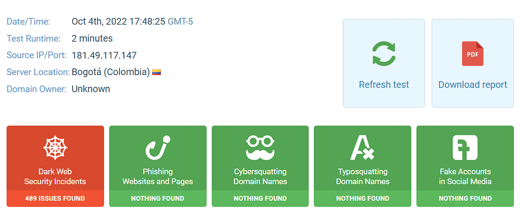 De acuerdo con revisiones realizadas por nuestro equipo sobre exposición de datos o información relacionada con el incidente presentado al dominio de la entidad, se encontró la siguiente información: