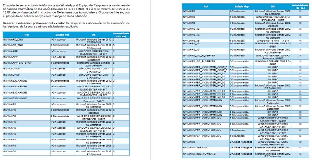 De acuerdo a los hallazgos recolectados por el INVIMA y analizados por el laboratorio de informática forense del Centro Cibernético de la Policía Nacional, se encontró muestras del Ransomware BlackByte.