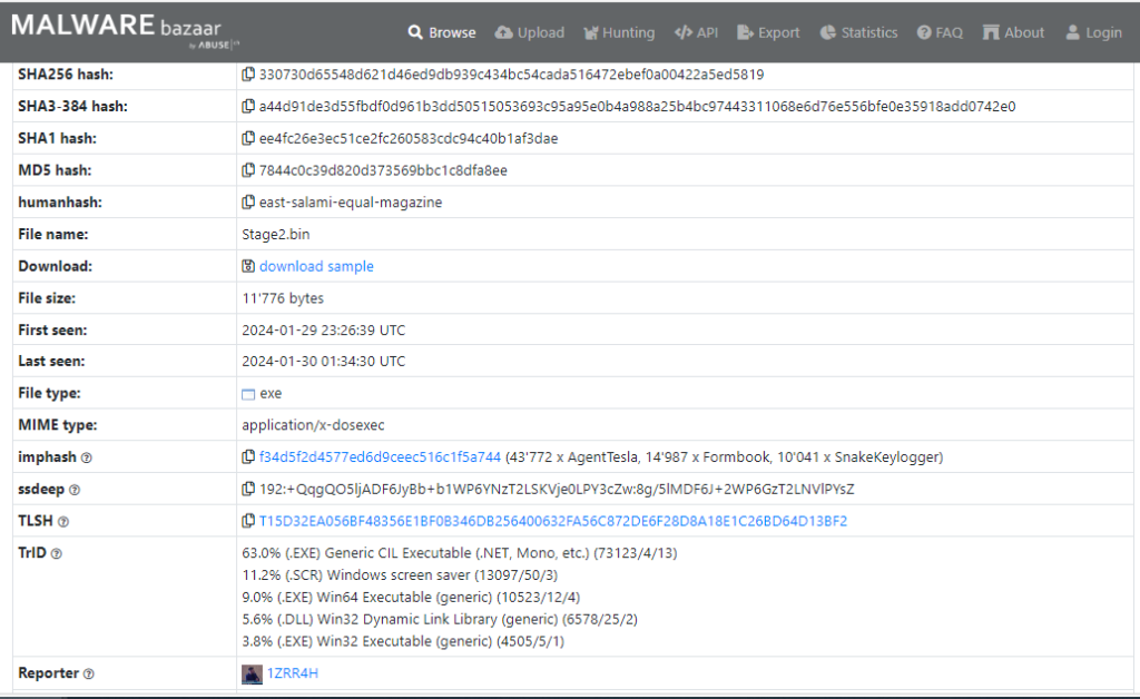 Según investigación de German Fernández (Security Research de Chile) que publica en su cuenta de Linkedin, se detecto un archivo llamado Stage2.exe, el cual es muy probable que se uso en el ataque a Salud Total