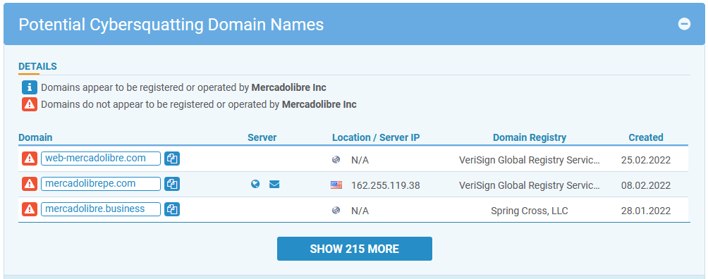 Hicimos un chequeo al dominio mercadolibre.com encontrando la siguiente información: