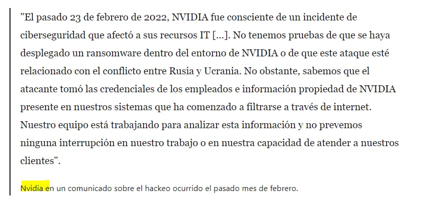 https://hipertextual.com/2022/03/que-ha-pasado-con-nvidia-hackers-latinoamericanos-ponen-en-jaque-al-gigante-de-las-graficas