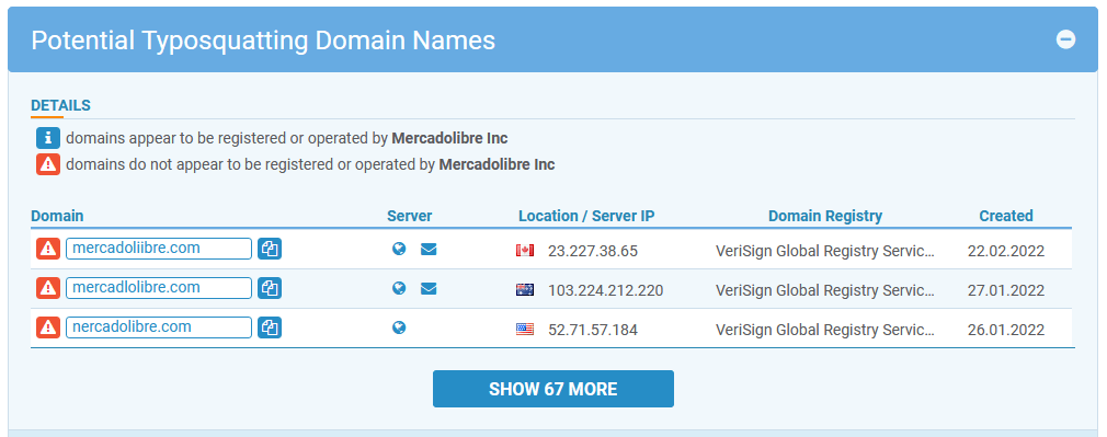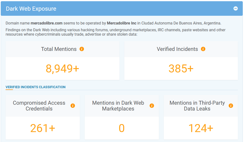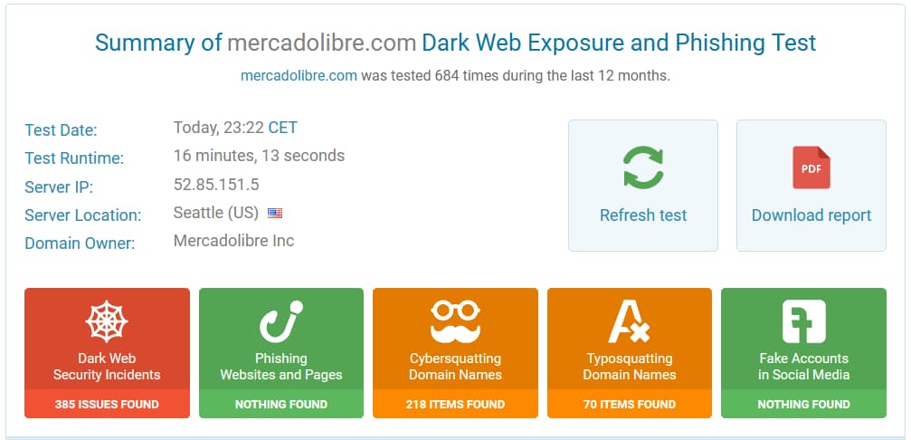 Hicimos un chequeo al dominio mercadolibre.com encontrando la siguiente información: