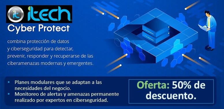 Itech Cyber Protection: Es la solución que integra la protección de datos y ciberseguridad todo en uno que incluye: identificación de vulnerabilidades, prevención de exploits, anti malware y anti ransomware basado en IA, herramientas de seguridad avanzada, gestión y control de dispositivos, filtrado de urls, prevención de fuga de informacion (DLP), copias de seguridad y restauración, recuperación ante desastres, uso compartido de archivos, asistencia remota, supervisión y creación de informes entre otras funcionalidades.