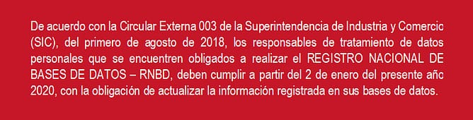 Recuerde que la Superintendencia de Industria y Comercio (SIC) garantiza el derecho que tienen todas las personas a conocer, actualizar y rectificar la información que se haya recogido sobre ellas en bases de datos o archivos que sean susceptibles de tratamiento por entidades de naturaleza pública o privada.