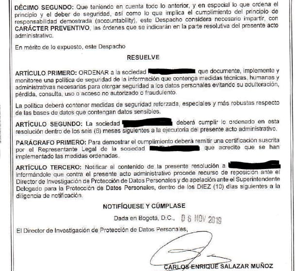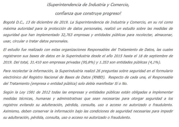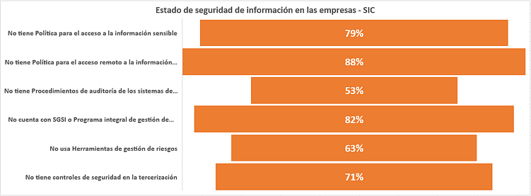 Estudio de la SIC muestra que 6 de cada 10 empresas no cuentan con políticas y medidas de seguridad de información. 148 empresas que fueron revisadas tratan datos personales sensibles y afirmaron no haber hecho nada respecto de las preguntas de seguridad de los datos. Por eso, la Superintendencia de Industria y Comercio emitió órdenes a todas estas empresas para que implementen medidas de seguridad que garanticen la seguridad de la información de las personas.