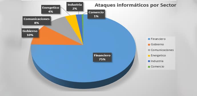 Según un estudio de Digiware, integrador de seguridad informática en América Latina, el sector financiero pasó del segundo al primer puesto en cuanto incidentes cibernéticos. Según la compañía el sector financiero el año pasado registraba el 14.34% de ataques, este año la cifra se eleva por encima de los 75,29% equivalentes a 6.600.000 ataques por día.
